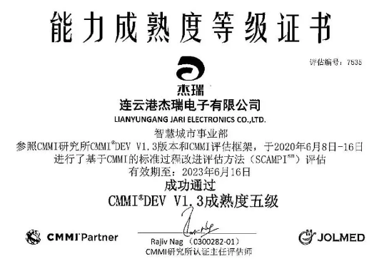 此次CMMI-Dev ML5級認(rèn)證的順利通過,標(biāo)志著杰瑞電子的軟件過程組織、技術(shù)研發(fā)與項(xiàng)目管理已經(jīng)達(dá)到國際領(lǐng)先標(biāo)準(zhǔn),具備優(yōu)秀的軟件成熟度及軟件項(xiàng)目管理能力。