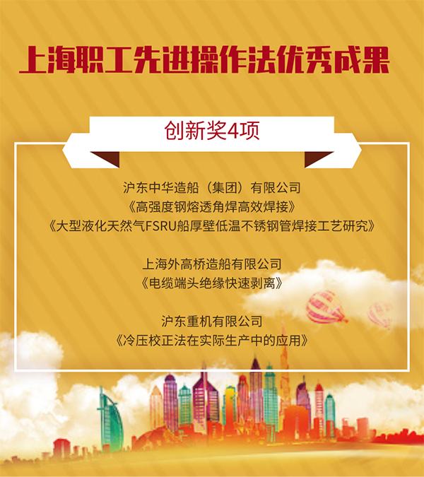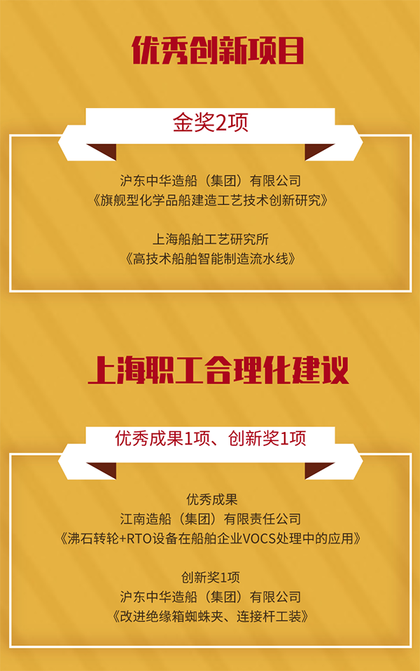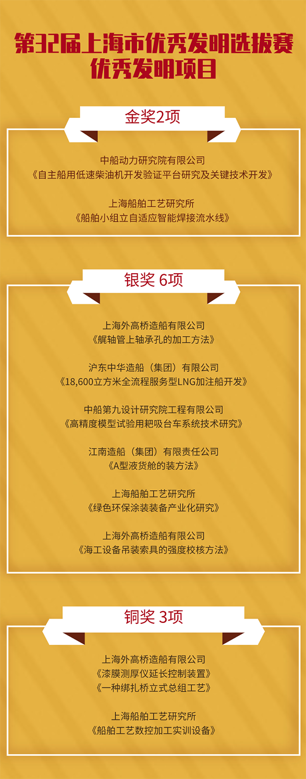 中國船舶集團(tuán)上海船舶系統(tǒng)共19項職工創(chuàng)新成果,在第32屆上海市優(yōu)秀發(fā)明選拔賽等各項賽事中斬獲佳績。