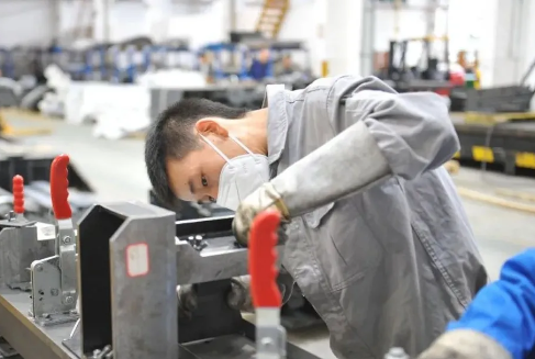 看,昆船公司小伙伴認(rèn)真的眼神。他正專注于成都機(jī)場輸送設(shè)備的零部件焊接裝卡工作。