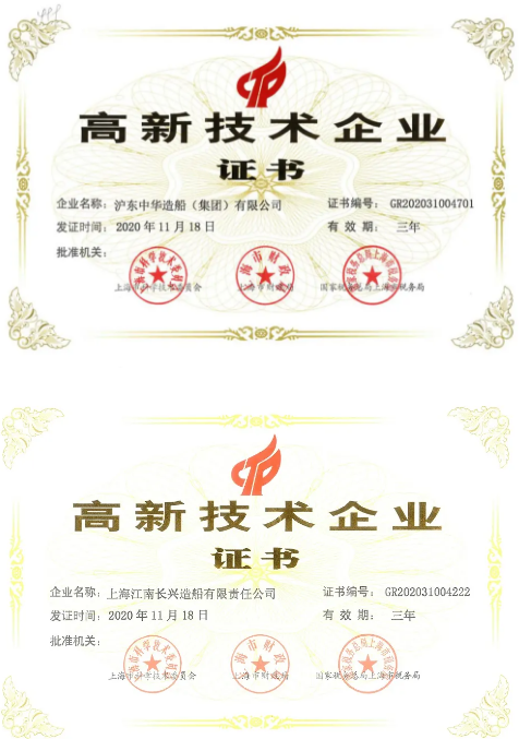 日前,中國(guó)船舶集團(tuán)旗下滬東中華及其控股公司上海江南長(zhǎng)興造船有限責(zé)任公司雙雙收到了由上海市科學(xué)技術(shù)委員會(huì)、上海市財(cái)政局、國(guó)家稅務(wù)總局上海市稅務(wù)局聯(lián)合頒發(fā)的高新技術(shù)企業(yè)證書。
