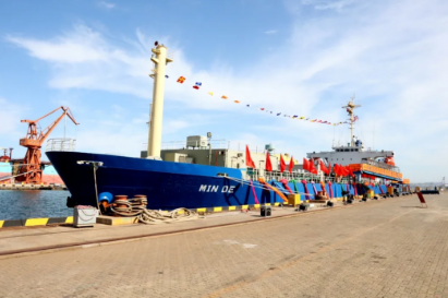 2020年,中國(guó)船舶集團(tuán)旗下大船集團(tuán)將散貨船改裝而成的“民德”號(hào)交付。這是全球首制、具有完全自主知識(shí)產(chǎn)權(quán)的舷側(cè)開孔式養(yǎng)殖工船,具有魚類養(yǎng)殖、餌料加工、活魚運(yùn)輸?shù)裙δ堋=淮耐瑫r(shí),大船集團(tuán)與東方漁業(yè)簽約10+8艘大型養(yǎng)殖工船項(xiàng)目。