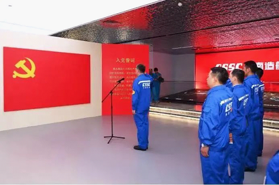 在慶祝中國共產(chǎn)黨成立100周年之際,100名來自中國船舶集團(tuán)的產(chǎn)業(yè)工人新黨員在江南造船博物館集中進(jìn)行了入黨宣誓