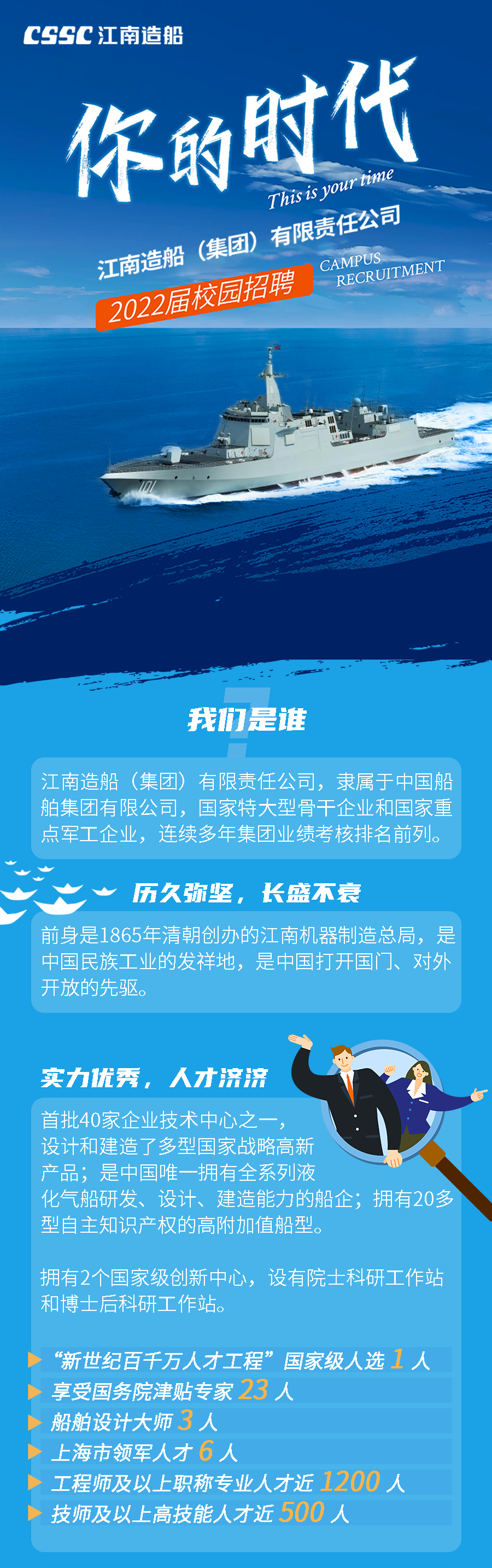 中國(guó)船舶集團(tuán)旗下 江南造船、中國(guó)艦船研究院 校園招聘大幕已拉開(kāi) 快來(lái)中國(guó)船舶 開(kāi)啟你的時(shí)代