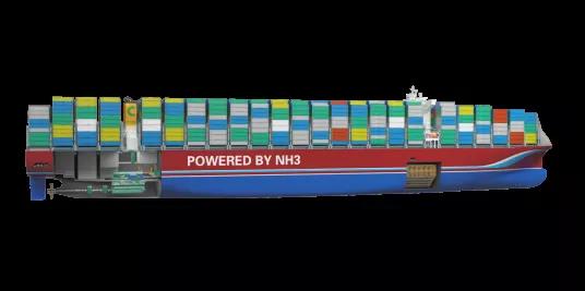 大船集團與曼恩能源方案、英國勞氏船級社(LR)共同開發(fā)了“C-FUTURE” 零碳排放23000箱超大型集裝箱船。LR頒發(fā)了AIP證書。該船型率先提出“C-FUTURE”概念,創(chuàng)新性的采用液氨為動力燃料,實現(xiàn)船舶零碳排放;曼恩最新研發(fā)的液氨燃料主機和大船集團自主研發(fā)的燃料供應(yīng)系統(tǒng),匹配大型可調(diào)螺距螺旋槳,配合軸帶發(fā)電機,提供船舶推進動力和電力供應(yīng);常壓、低溫、低蒸發(fā)率、高艙容利用率的A型燃料艙,為船舶提供了充沛續(xù)航。