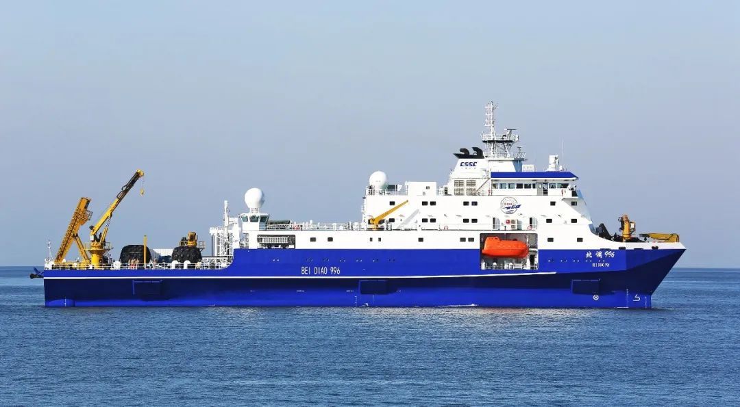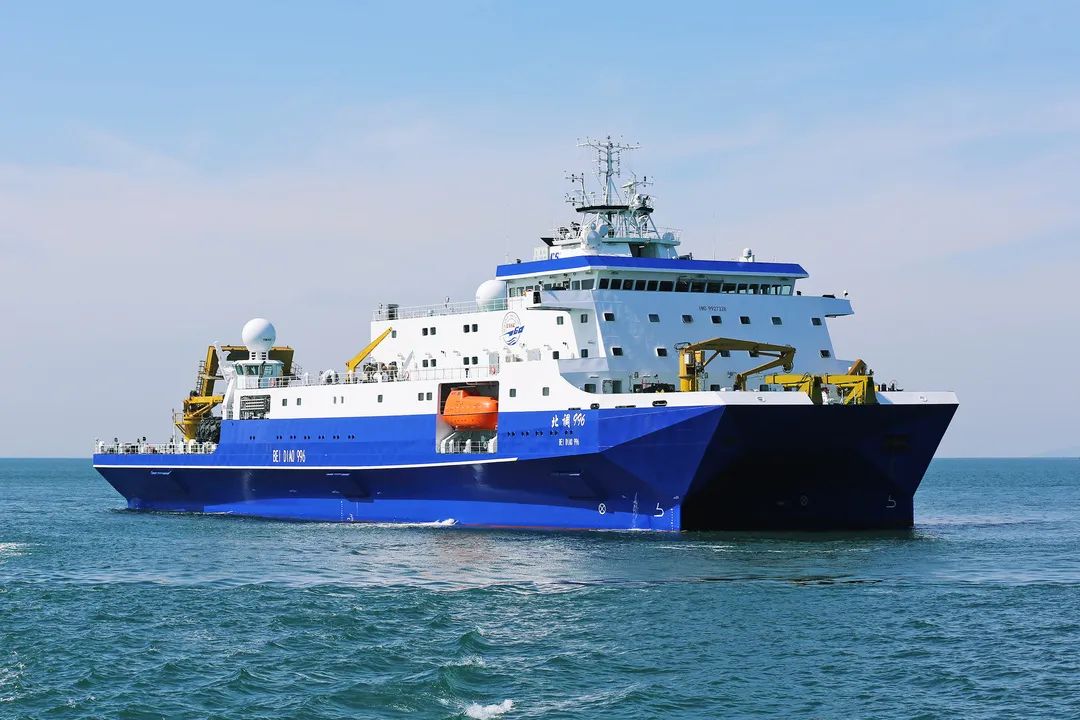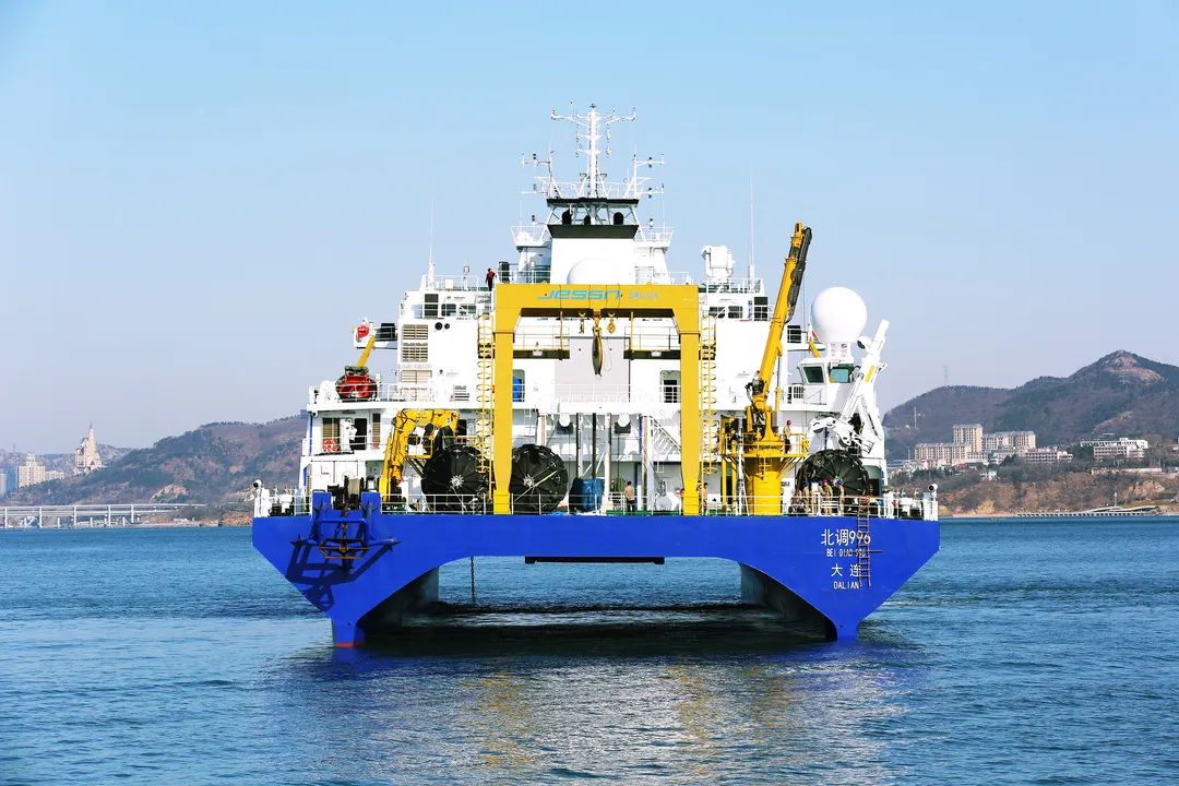 小水線面雙體船是一種水線面積小,且由兩個(gè)潛水體和一個(gè)水上箱體,中間有兩個(gè)流線型支柱連接起來的船舶。該船型耐波性好,能夠很好地解決深海作業(yè)浪大、波峰高等問題,利于在深海開展試驗(yàn)工作。該船于2019年8月26日開工,2021年3月20日下水,2022年3月23日完工,歷時(shí)2年零7個(gè)月時(shí)間。該船總長(zhǎng)99.8米,型寬32米,吃水7.5米,型深13.2米,航速15節(jié),排水量6700噸。