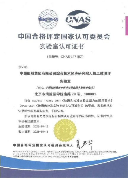 近日,中國(guó)船舶集團(tuán)旗下中船綜合院人機(jī)工效測(cè)評(píng)實(shí)驗(yàn)室(以下簡(jiǎn)稱(chēng)“實(shí)驗(yàn)室”)獲得中國(guó)合格評(píng)定國(guó)家認(rèn)可委員會(huì)(CNAS)實(shí)驗(yàn)室認(rèn)可證書(shū),成為國(guó)內(nèi)首家具備國(guó)家認(rèn)可人機(jī)工效測(cè)評(píng)能力的試驗(yàn)機(jī)構(gòu)。