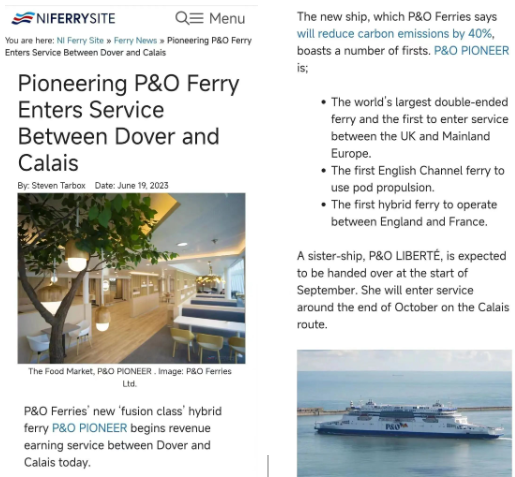 由于“P&O Pioneer”不必掉頭,每次航線將節(jié)省7分鐘的時(shí)間和近60%的燃料消耗,從而能在同樣的航行時(shí)間下降低航行速度、燃料消耗和排放?!癙&O Pioneer”的首航標(biāo)志著英法航線進(jìn)入了綠色低碳的新時(shí)代。