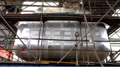 該B型模擬艙艙容為48立方米,艙室及氣室外形和節(jié)點型式皆與實船艙型保持一致,材質(zhì)為9NI鋼。本次模擬艙建造完工,驗證了外高橋造船自主完成B型艙的設(shè)計、生產(chǎn)制造和質(zhì)量控制等全流程的能力,為實船建造打下堅實基礎(chǔ)。