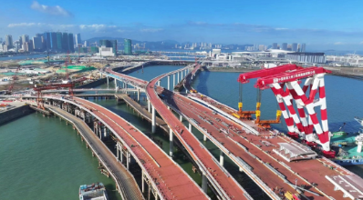 12月15日,隨著最后一節(jié)段鋼梁精準對位至CP8~CP9墩頂支座上,澳氹第四條跨海大橋72節(jié)段鋼梁吊裝任務(wù)全部完成大橋引橋和匝道實現(xiàn)全部合攏。