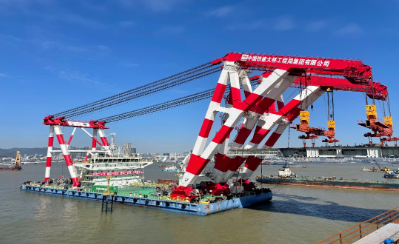 澳氹第四條跨海大橋鋼梁吊裝任務(wù)由“鐵建大橋起1”號起重船完成。該船由中國船舶集團七〇八所研發(fā)設(shè)計,一期“L”型起重臂架為澳氹四橋工程專屬設(shè)計和打造,具有完全自主知識產(chǎn)權(quán)。