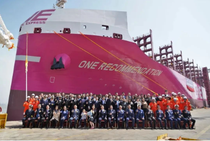 3月21日,由中國(guó)船舶集團(tuán)外高橋造船聯(lián)合中船貿(mào)易為加拿大Seaspan Corporation(以下簡(jiǎn)稱SEASPAN)建造的7000TEU集裝箱船“舉賢”號(hào)(ONE RECOMMENDATION)順利完成命名。