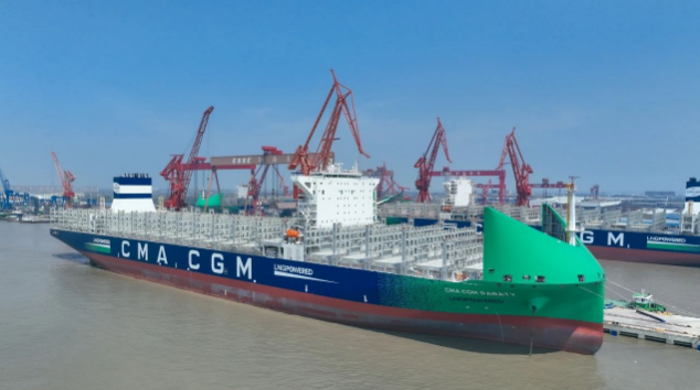 4月9日,中國船舶集團(tuán)旗下七〇八所設(shè)計、滬東中華聯(lián)合中船貿(mào)易建造的新款清潔能源“海上綠巨人”13000TEU液化天然氣(LNG)雙燃料動力大型集裝箱船“CMA?CGM PARATY”號命名交付。