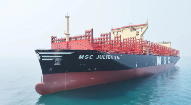 “MSC 朱麗葉”號安裝脫硫塔并預(yù)留液化天然氣(LNG)動(dòng)力功能,采用全新理念的環(huán)保減碳減阻設(shè)計(jì),滿足最新的環(huán)保排放標(biāo)準(zhǔn),是一款綠色環(huán)保、高效節(jié)能的大型集裝箱船。