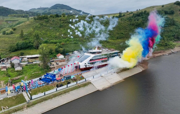 “天河一號”在東北地區(qū)內(nèi)河游覽船領(lǐng)域創(chuàng)下了多個“之最”:投資金額最大、噸位最大、載客人數(shù)最多、推進功率最高、服務(wù)功能最齊全。作為吉林省首艘混合動力綠色新能源船舶,同時也是首艘超過500客位的大型游覽船,“天河一號”的亮相為松花江增添了一道亮麗的風景線。