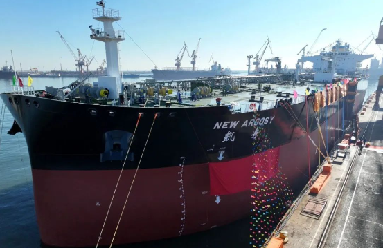12月9日,中國船舶集團所屬中國重工大連造船為招商輪船建造的11.5萬噸原油船“凱舟”號命名交付。這是大連造船山船重工今年交付的第15艘船舶,標志著山船重工超額完成全年交船目標任務(wù)。
