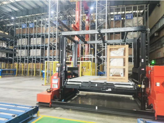 該系統(tǒng)單托盤(pán)舉升能力達(dá)到6噸,適用于各類(lèi)大、重、分布不均、形狀各異物資的立體存儲(chǔ)。采用業(yè)內(nèi)首創(chuàng)的駛?cè)胧阶詣?dòng)導(dǎo)向車(chē)作為移載動(dòng)力,通過(guò)自主研發(fā)的重型堆垛裝備與智能控制系統(tǒng)聯(lián)動(dòng),能夠在復(fù)雜的立體倉(cāng)庫(kù)環(huán)境中準(zhǔn)確定位目標(biāo)并快速平穩(wěn)完成作業(yè)任務(wù)。同時(shí),通過(guò)引入現(xiàn)代物聯(lián)網(wǎng)和數(shù)字孿生等先進(jìn)技術(shù),實(shí)現(xiàn)了倉(cāng)儲(chǔ)物流的智能可視化運(yùn)營(yíng)。