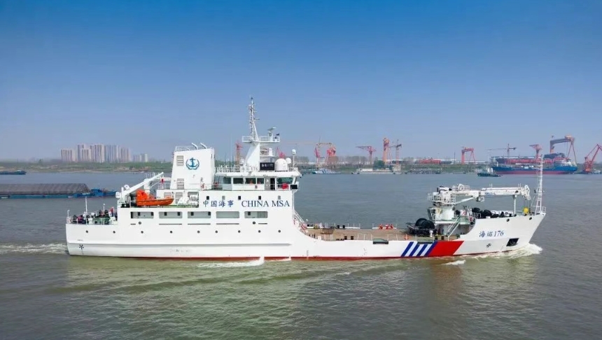“海巡176”滿載排水量約為2450噸,續(xù)航力5000海里,采用全電力驅(qū)動(dòng),主要負(fù)責(zé)南海海區(qū)各港口及航道的航標(biāo)布設(shè)、起吊、維護(hù)以及應(yīng)急搜救等任務(wù),同時(shí)兼具海上溢油處置、海事應(yīng)急搜救、值守人員交通、物資補(bǔ)給、無線電導(dǎo)航信號(hào)監(jiān)測等多重功能。