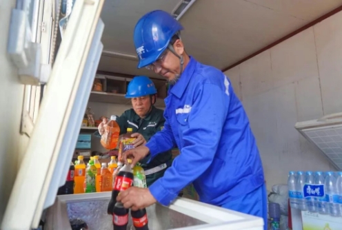 在飲食消暑保障上,大船天津構(gòu)建起全鏈條清涼補(bǔ)給體系。清涼解暑的綠豆湯成為員工餐桌上的“標(biāo)配”,供隨餐飲用;4000余箱瓶裝水以及大批藿香正氣水作為夏季防暑降溫物資配送至各部門、各協(xié)作單位班組;作業(yè)現(xiàn)場(chǎng)的冰柜里,清涼飲品隨時(shí)待取;為協(xié)作單位員工送上遮陽(yáng)草帽,讓清涼關(guān)懷覆蓋每一位一線勞動(dòng)者。