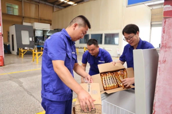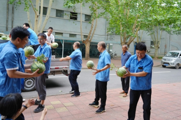 “這西瓜真新鮮!”“今年的西瓜肯定甜!”一個(gè)個(gè)滾圓的西瓜遞到職工們汗?jié)竦氖种?,大家邊卸西瓜邊聊天,現(xiàn)場(chǎng)傳來(lái)陣陣歡笑。此前,中船河柴已為一線職工發(fā)放綠豆、冰糖等防暑降溫用品,在生產(chǎn)現(xiàn)場(chǎng)安排專(zhuān)人熬煮綠豆湯,及時(shí)有效服務(wù)職工。接下來(lái),中船河柴將結(jié)合天氣情況,動(dòng)態(tài)調(diào)整“送清涼”計(jì)劃,分批次發(fā)放防暑降溫物資,為夏季安全生產(chǎn)提供堅(jiān)強(qiáng)保障。