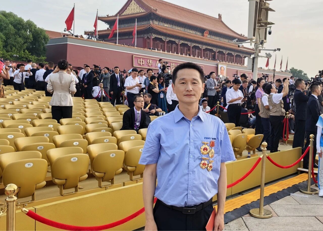 當(dāng)雄壯的《義勇軍進(jìn)行曲》奏響,五星紅旗冉冉升起,我情不自禁地起身肅立,與現(xiàn)場(chǎng)所有群眾代表一同高唱國(guó)歌。這一刻,跨越時(shí)空的民族記憶被瞬間激活,80年前先輩們?yōu)槊褡宕嫱鲈⊙獖^戰(zhàn)的壯闊畫(huà)卷仿佛在眼前重現(xiàn)。在閱兵分列式中看到了我們中船集團(tuán)研制的8型整裝裝備震撼出場(chǎng),接受黨和人民的檢閱,倍感榮光,背后是我們中船人的不懈努力和創(chuàng)新精神。