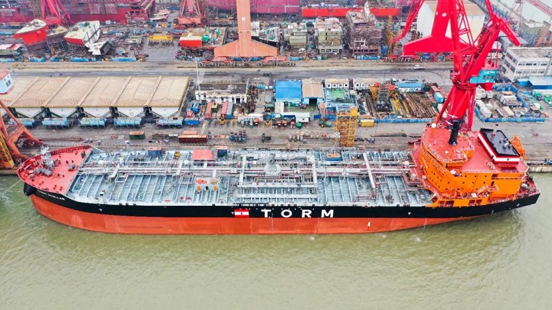 ????廣船國際為TORM航運公司建造的7艘5萬噸化學(xué)品/成品油船中最后一艘船提前2天完成試航歸來。該型船加裝開式除硫系統(tǒng),是環(huán)保、節(jié)能、高效的新型油船,試航的完成,為搶抓完工節(jié)點贏得了寶貴時間,系列船全部交付指日可待!