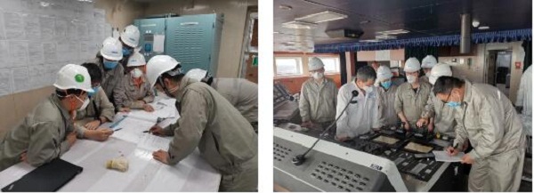 ????試航期間,滬東中華試航領(lǐng)導(dǎo)小組臨時黨支部與上海LNG技術(shù)部試航臨時黨支部,開展了“海上戰(zhàn)疫”共建活動,做細做實試航期間的疫情防控工作。