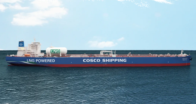 5月28日,中國船舶集團(tuán)旗下大船集團(tuán)為中遠(yuǎn)海運(yùn)集團(tuán)建造的全球首制雙燃料超大型原油船(VLCC) 液化天然氣(LNG)燃料儲艙——2x3500m3C型LNG低溫儲艙成功交付。