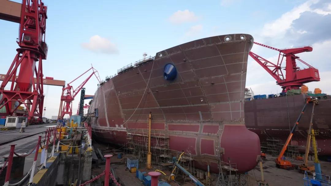 主甲板貫通:17.4萬方LNG項(xiàng)目首制船塢內(nèi)生產(chǎn)有序推進(jìn)