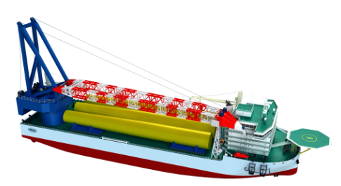 該船船長186米,寬48米,型深16米,滿載排水量約90000余噸。起重機采用單舷側布置設計,起吊高度可達主甲板以上145米,相當于50層摩天大廈。還配備有DP2級動力定位系統(tǒng),可實現(xiàn)深遠??焖?、精確定位。能夠在海上風電場進行各項風電工程作業(yè),主要包括10兆瓦及以下海上風機的基座、支撐塔架、機艙及葉片的吊裝和風機基礎等施工作業(yè),以及其他海上吊裝或支持作業(yè)。