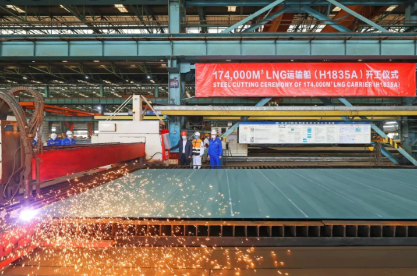 在喜迎黨的二十大之際,中國(guó)船舶集團(tuán)旗下滬東中華生產(chǎn)捷報(bào)頻傳。10月14日,滬東中華為中國(guó)石油國(guó)際事業(yè)有限公司建造的17.4萬(wàn)立方米大型液化天然氣(LNG)運(yùn)輸船、為法國(guó)達(dá)飛海運(yùn)集團(tuán)建造的全球首批1.3萬(wàn)TEU液化天然氣(LNG)雙燃料動(dòng)力超大型集裝箱船同日開工,還有一艘為上海申能集團(tuán)建造的8萬(wàn)立方米LNG船主船體實(shí)現(xiàn)結(jié)構(gòu)成型。至此,在短短的一周時(shí)間里,滬東中華共實(shí)現(xiàn)了一船出塢、一船入塢、一船完成試航、一船主船體實(shí)現(xiàn)結(jié)構(gòu)成型、兩船開工等六大生產(chǎn)節(jié)點(diǎn),建造能級(jí)和效率不斷提升,掀起了“奮戰(zhàn)第四季度、勇奪全年目標(biāo)”的生產(chǎn)經(jīng)營(yíng)新高潮。