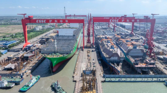 近日,24000TEU系列集裝箱船(H1873A)在中國船舶集團旗下滬東中華長興島西部廠區(qū)1號船塢提前11天出塢。在建造團隊努力下,該船出塢完整性達到系列船最佳,為縮短碼頭建造周期創(chuàng)造有利條件。