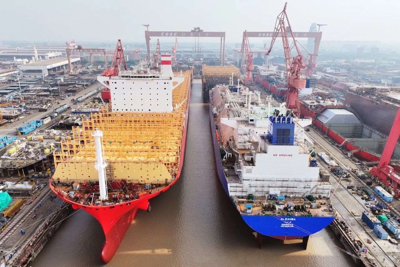10月8日,中國(guó)船舶集團(tuán)旗下江南造船3號(hào)船塢完成了年度第五批次出塢,2艘整船出塢、2艘半船同步起浮。