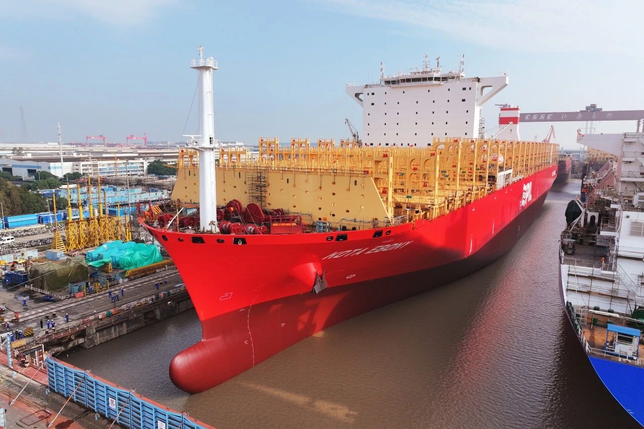 該船為江南研究院自主研發(fā)設(shè)計(jì)的“鯤”系列大型集裝箱船,采用LNG雙燃料動(dòng)力,是新型高效、綠色、節(jié)能環(huán)保的船型。