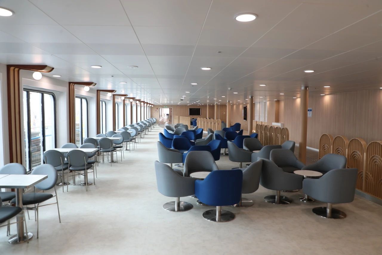 該船具備完全自主知識產(chǎn)權(quán),內(nèi)裝材料實現(xiàn)了100%國產(chǎn)化,獲得生物安全入級符號、應(yīng)用有機硅防污漆,交付后將于2025年1月起在歐洲開展運營,航線覆蓋地中海區(qū)域。