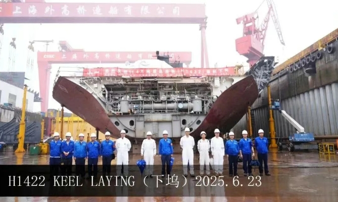在該船的船建造過程中,建造團隊齊心協(xié)力,與船東船檢密切合作,合理調(diào)配生產(chǎn)資源,統(tǒng)籌物流,確保分段按計劃及時供應,順利完成了總段塞軸裝槳及泵艙完整性目標。目前,該船關鍵路徑分段已全部配齊,整船分段結構全部完工,為下塢后的快速搭載創(chuàng)造了有利條件。