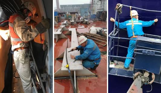 ????疫情期間,為了追趕出塢節(jié)點,江南造船建造團隊積極與外籍船東監(jiān)造組成員和服務(wù)商溝通,嘗試自主施工并細(xì)化監(jiān)督措施