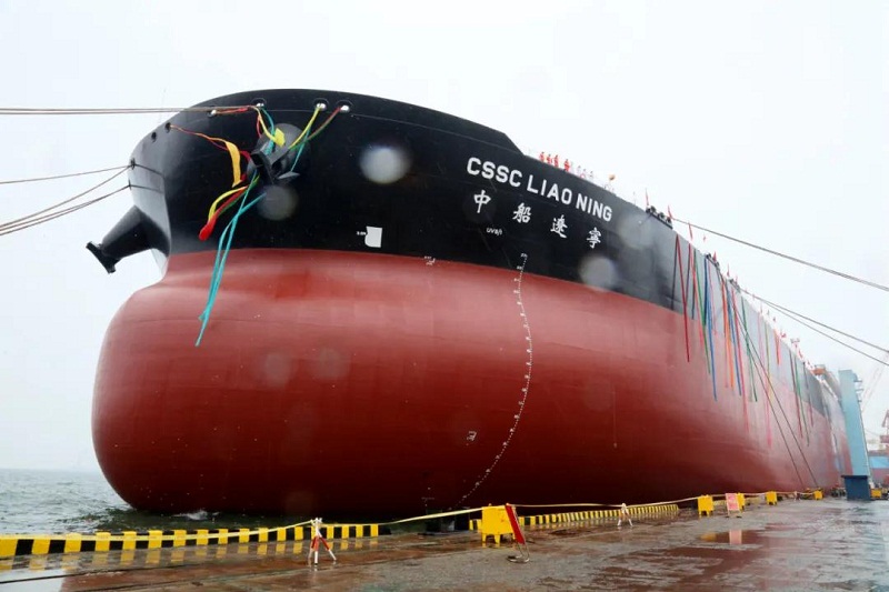 ????今天,中國船舶集團(tuán)旗下大船集團(tuán)為中船貿(mào)易所屬租賃公司建造的30.8萬噸超大型原油船“中船遼寧”號命名交付?!爸写|寧”號是大船集團(tuán)自主開發(fā)的新一代極具市場競爭力的品牌船型。該船總長332.95米,型寬60米,最大載重量30.8萬噸,屬于無限航區(qū)船型,續(xù)航里程超過25000海里,在設(shè)計吃水20.5米可正常裝載200萬桶原油通過馬六甲海峽。