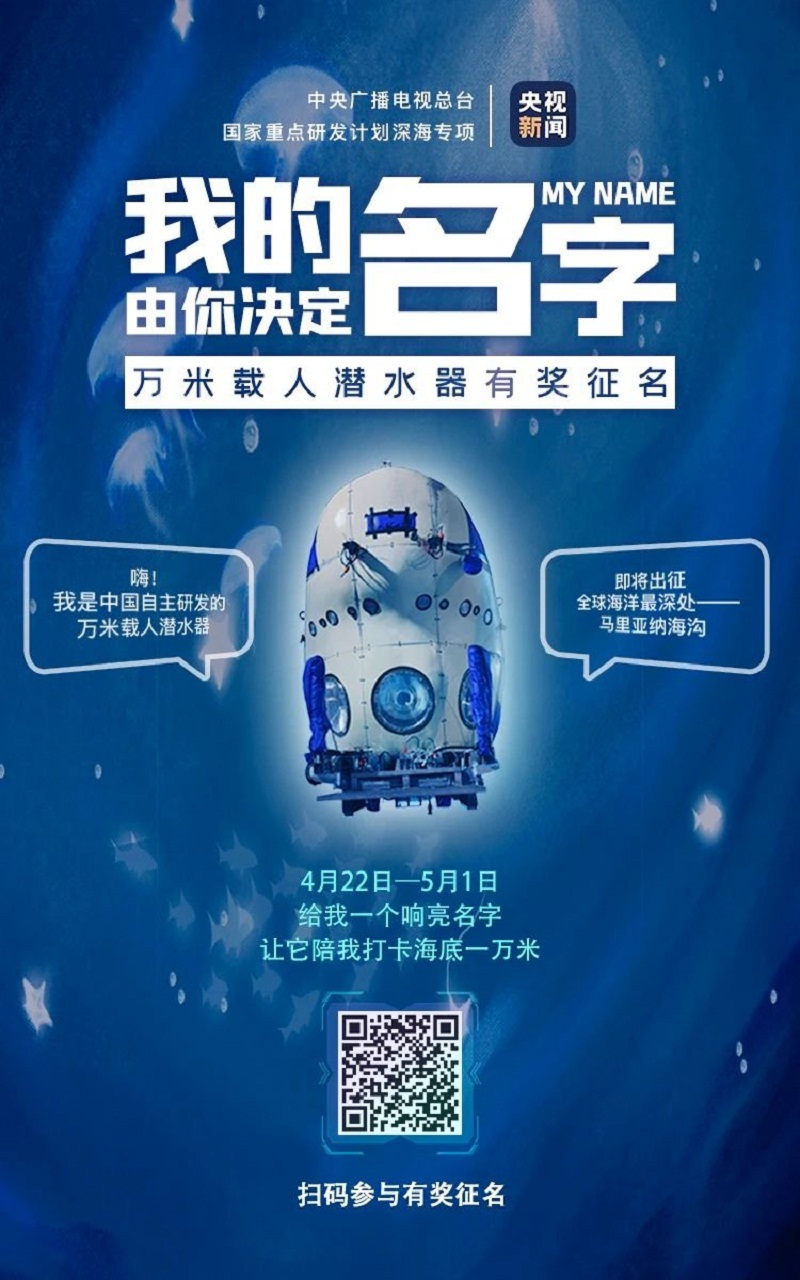 萬米載人潛水器要出發(fā)嘍!我們的“娃兒”請你給起名!