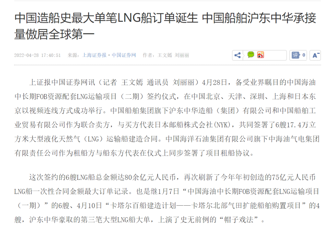 媒體聚焦:史上最大單筆LNG船訂單生效