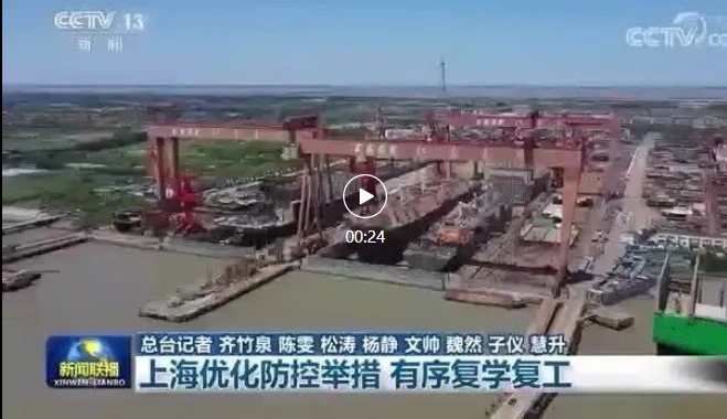 新聞聯(lián)播聚焦上海優(yōu)化防控舉措,加快推動復工復產(chǎn),點贊中國船舶集團旗下三大船企都實現(xiàn)復工復產(chǎn)。