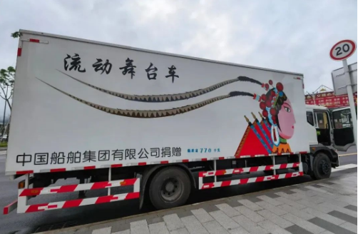 在中國船舶廣場揭牌儀式現(xiàn)場,一輛印有中國船舶集團有限公司捐贈的流動舞臺車格外醒目,工作人員告訴記者:“過去送文化下鄉(xiāng)巡回演出,由于需要不斷改變巡演地點,刮風(fēng)下雨就只能‘望雨興嘆’,現(xiàn)在有了移動舞臺車,10分鐘內(nèi)就將所有設(shè)備安裝到位,并且車內(nèi)預(yù)留了燈光、聲音、字幕、幕布、電源等接口,具有很好的擴展性,車上的舞臺滿足了專業(yè)演出的需求,可以讓整個演出更具表演性,舞臺車可以直接開進百姓家,鄉(xiāng)親們家門口就能看表演,感謝中國船舶集團讓文化下鄉(xiāng)不再難?!臂屡D縣民族文化工作隊隊長安飄感激地說:“感謝中國船舶集團對邊疆文化的關(guān)心,我們一定會守好文化邊疆!”。