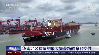 央視新聞 |華南地區(qū)建造的最大集裝箱船命名交付