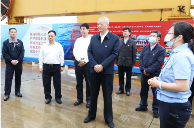調(diào)研期間,中央主題教育第42指導(dǎo)組組長(zhǎng)王壽君、副組長(zhǎng)房德權(quán),成員程建宏、項(xiàng)紫君、仇國歡一行深入黃埔文沖科研生產(chǎn)現(xiàn)場(chǎng),登上在建重點(diǎn)船舶,詳細(xì)了解重點(diǎn)項(xiàng)目產(chǎn)品性能、技術(shù)優(yōu)勢(shì),聽取了關(guān)于設(shè)計(jì)研發(fā)、創(chuàng)新改進(jìn)、生產(chǎn)建造過程的介紹。指導(dǎo)組一行還走進(jìn)黃埔文沖廠史館,了解黃埔文沖170多年的發(fā)展歷程。