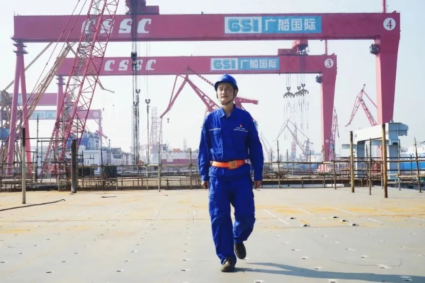 中船集團、智領深藍。在廣船國際高質量發(fā)展向更高的山峰進發(fā)的征途上,馮文虎正手握焊槍,以一位大國工匠的擔當,在鋼與火的交匯中,篆刻著建設海洋強國的錚錚誓言。